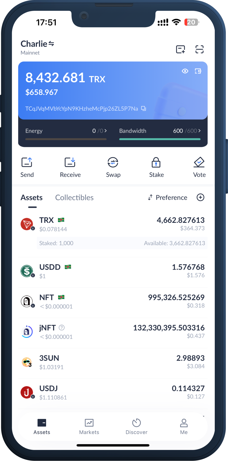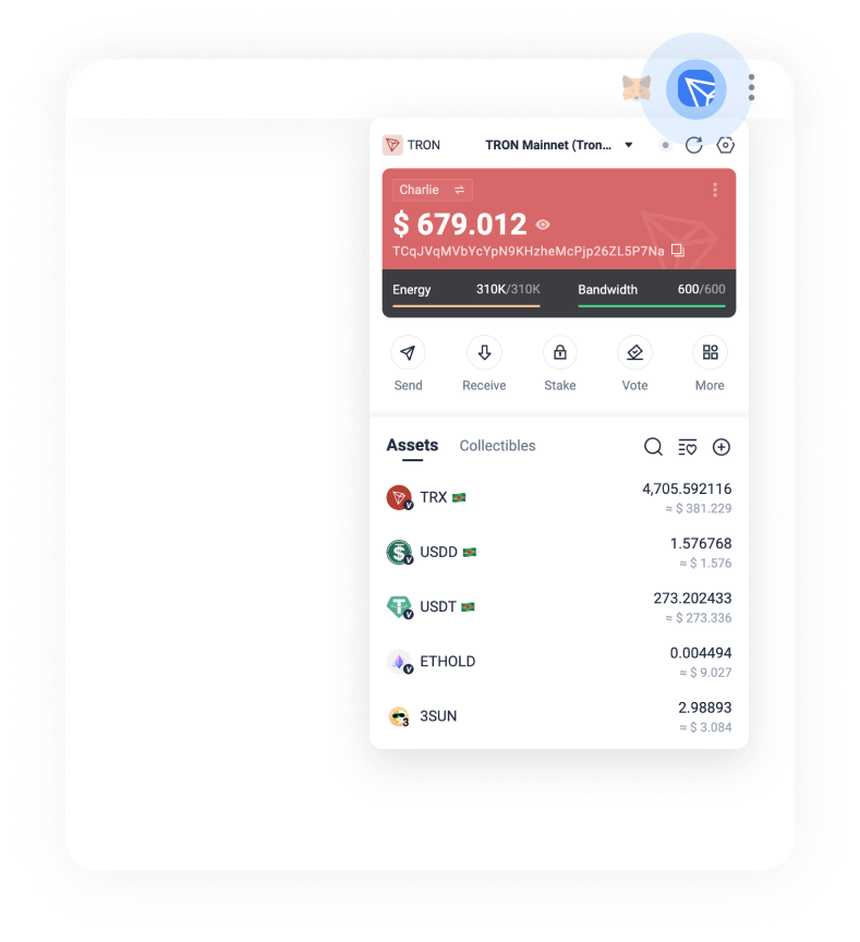 • Fully supports the TRON network and deeply supports its staking mechanisms